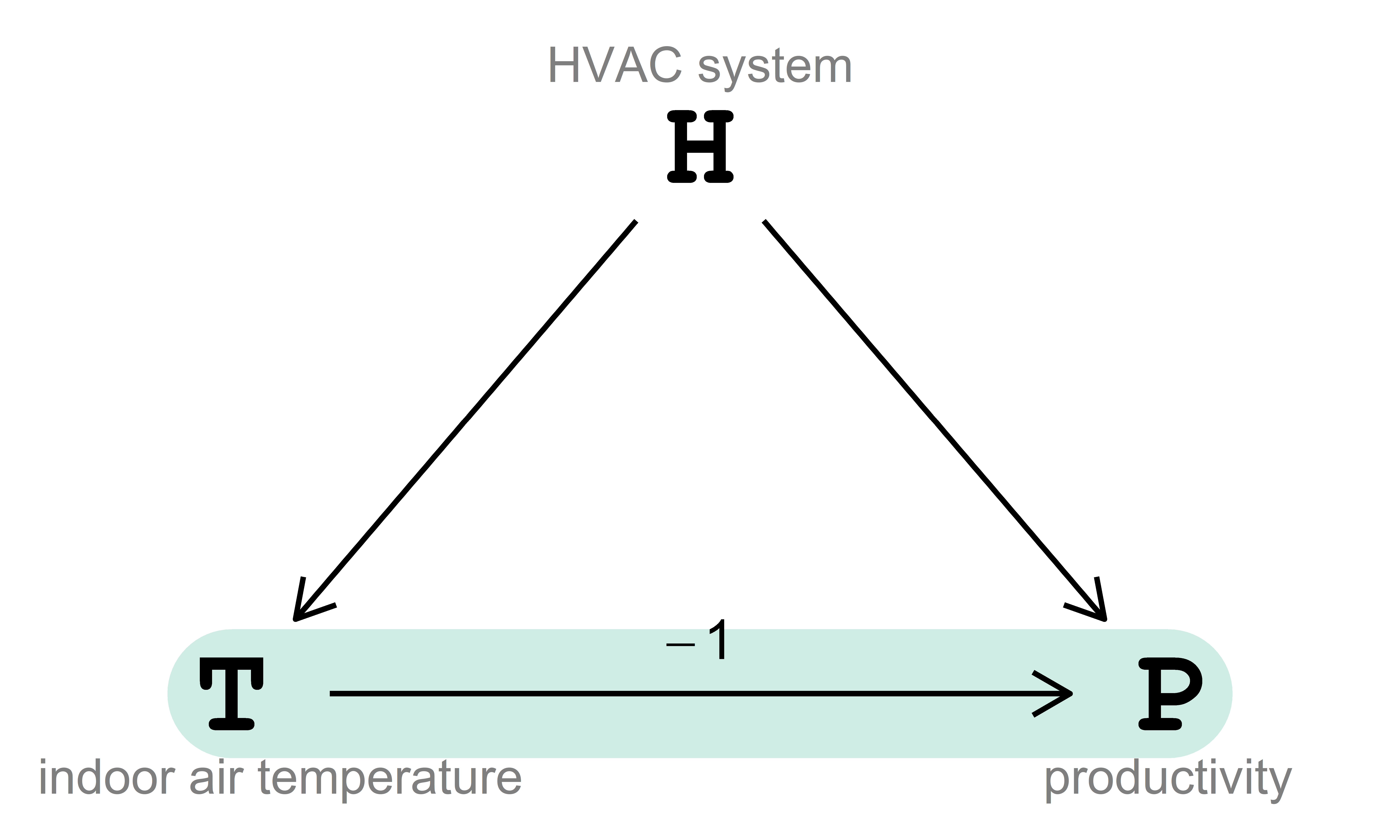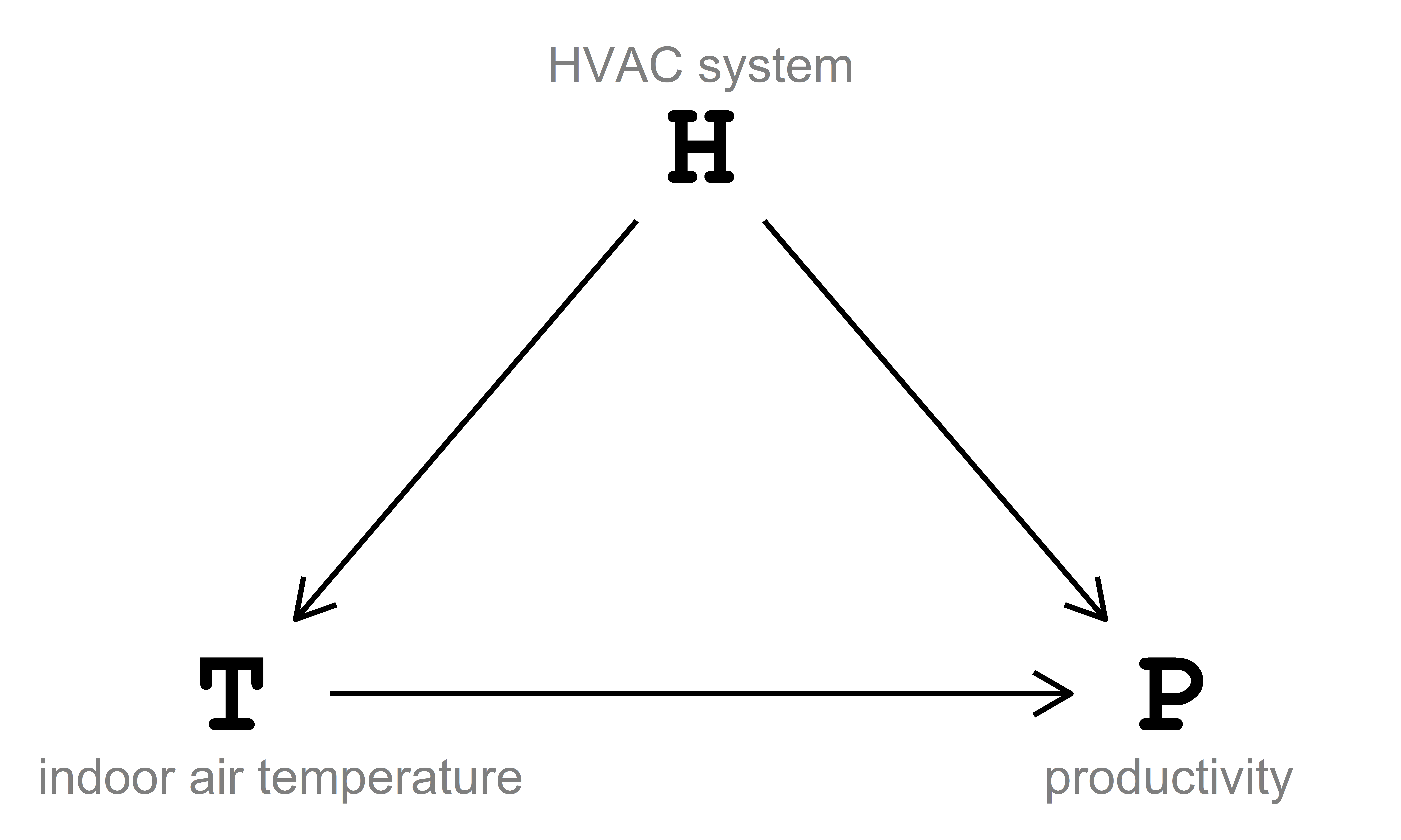 - \(P \sim f_{P}(T, H)\), read as ‘productivity \((\text{P})\) is some function of indoor air temperature \((\text{T})\) and HVAC system \((\text{H})\)’.